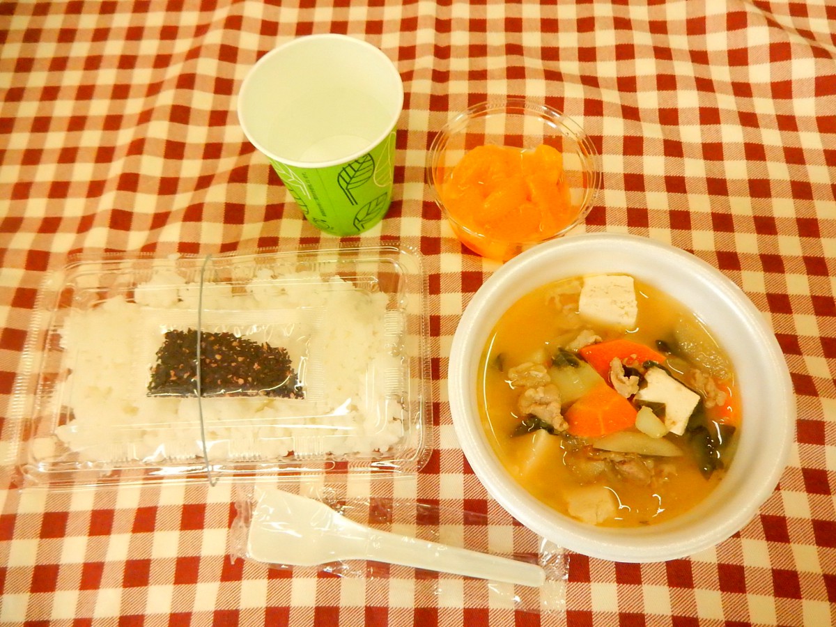 阪神淡路大震災があった1月17日に、「常備米で作ったおにぎり・缶詰風のおかか煮・味噌汁」などが提供されました。