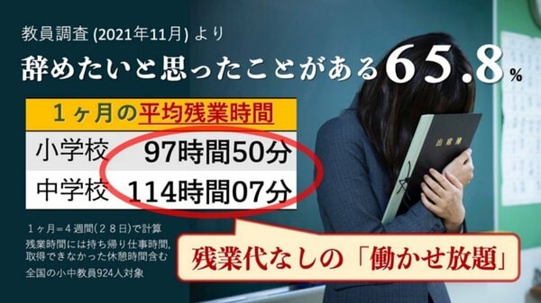 他には、残業時間が長すぎて自分の子どもと全然会えていないと嘆く先生も。